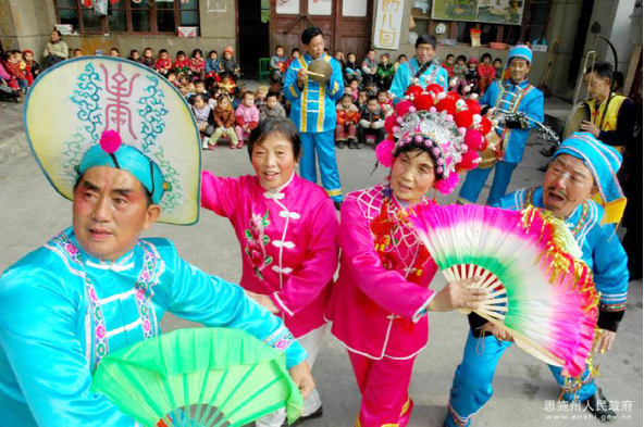 利川燈歌,又名燈調(diào),始于清代初期,已有300多年的歷史,是人們逢年過節(jié)之時以彩龍船為道具,畫地為臺、亦唱亦演的民間藝術(shù)形式。2011年5月,利川燈歌被國務(wù)院公布為第三批國家級非物質(zhì)文化遺產(chǎn)名錄。