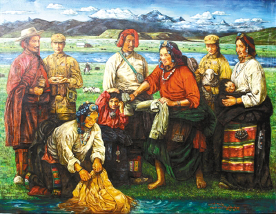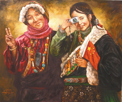 “以前畫(huà)畫(huà)時(shí),對(duì)自己的最高要求就是畫(huà)得要逼真,把油畫(huà)畫(huà)得像一幅放大了的照片,而現(xiàn)在關(guān)注的是如何畫(huà)出能體現(xiàn)當(dāng)代的畫(huà)面。西藏的美是無(wú)窮無(wú)盡的,我就想用繪畫(huà)的方式窮盡一生去追求,展現(xiàn)大美西藏?!比缃竦乃髀?,淡去了初出茅廬時(shí)一味追求畫(huà)面質(zhì)感的匠氣,多了些許內(nèi)心對(duì)西藏這片熱土深層次的思考。他筆下的西藏是一片充滿生機(jī)的土地,濃墨重彩之間,既有對(duì)傳統(tǒng)和過(guò)往年華的回望和懷念,又在仿若不經(jīng)意間透過(guò)一個(gè)眼神、一抹色彩、一個(gè)小物件盡情詮釋活力和希望。