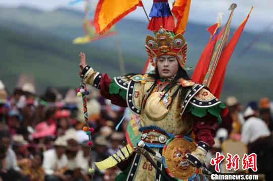 圖為掛牌儀式現(xiàn)場上演藏戲《格薩爾王傳》  鐘欣 攝