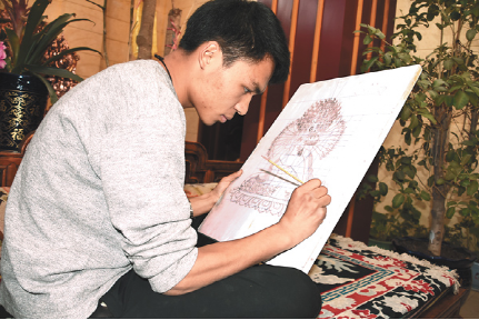 技藝上的登峰造極,次嘎把這一秘笈歸結(jié)成幾個平常的字眼:“興趣和堅持”。從小受家族文化的熏陶,兩個兒子對傳統(tǒng)文化有著濃厚的興趣。薪火相傳也成了次嘎肩上的責(zé)任。20出頭的大兒子扎西拉達穿著白T恤,皮膚白皙、手指纖長、陽光帥氣,立志要子承父業(yè)?!案赣H告訴我即便是要做一名手工藝人,也不能放棄對文化知識的學(xué)習(xí),從小便把我送到內(nèi)地學(xué)習(xí)。現(xiàn)在,我長大了,該回來了?!?扎西拉達的話語堅定。