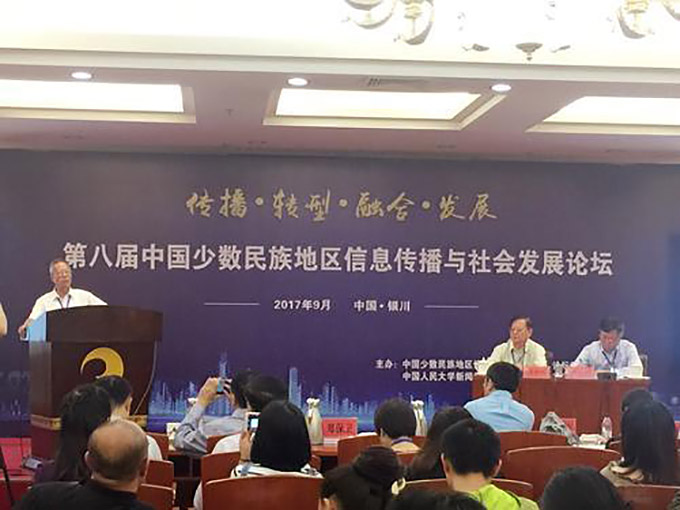 2017年9月16日,由中國少數(shù)民族地區(qū)信息傳播與社會(huì)發(fā)展論壇組委會(huì)、中國人民大學(xué)新聞傳播學(xué)院、寧夏大學(xué)新聞傳播學(xué)院聯(lián)合主辦,銀川市傳媒集團(tuán)協(xié)辦的第八屆少數(shù)民族地區(qū)信息傳播與社會(huì)發(fā)展論壇在寧夏銀川舉行。來自全國42所高校的130多名專家、學(xué)者齊聚銀川,圍繞少數(shù)民族地區(qū)信息傳播與社會(huì)發(fā)展問題進(jìn)行交流研討。