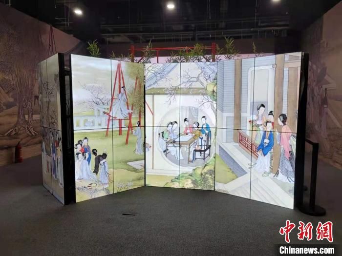 故宮《石渠寶笈》繪畫數字科技展的“展卷”區(qū)展出的繪畫作品,是經過故宮博物院專家、文化藝術學者共同研究探討,甄選出《石渠寶笈》中數十幅最具代表性書畫作品,以1:1的比例還原仿制,展示中國古代書畫作品精粹,讓民眾在家門口即可享受到科技、文化、藝術相融合的展覽。