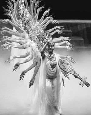 在敦煌舞的動作素材積累方面,無論是對敦煌壁畫舞姿的歸類、整理,對“敦煌舞特有的S型曲線運動規(guī)律”的發(fā)現(xiàn),以及“運用中國古典舞蹈的節(jié)奏韻律,把靜止的姿態(tài)與其風(fēng)格統(tǒng)一的動作過程結(jié)合起來,形成比較完整的舞蹈運動和造型體系”,還是在創(chuàng)作層面上《絲路花雨》對“反彈琵琶”典型壁畫舞姿的發(fā)展,《千手觀音》對“千手”舞姿造型的無限變化發(fā)展,以及《飛天》超越人體動作范圍極限對“三道彎”典型敦煌舞姿風(fēng)格的強(qiáng)化等,都是敦煌舞在動作素材層面的積極建設(shè)和發(fā)展。
