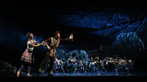 在舞劇敘事方式上,總導(dǎo)演之一董華興將民族性與現(xiàn)代性相融合,嘗試時(shí)空切換,段落重組,故事情節(jié)的倒敘、插敘,真實(shí)性與虛擬性相結(jié)合等方法?!耙魳分谱?、舞蹈語匯、服裝設(shè)計(jì)等方面都要符合當(dāng)?shù)厝罕姷纳?,接地氣老百姓才?huì)喜歡?!薄缎腋;ㄉ健房倢?dǎo)演之一馬文靜說。