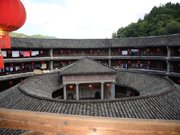 一座土樓就是一個(gè)藝術(shù)殿堂。每一座土樓,又如同一個(gè)“大家族,小社會(huì)”。土樓內(nèi),居住在同一屋頂下的幾十戶幾百人同祖同宗同血緣同家族,過(guò)著共門(mén)戶、共廳堂、共樓梯、共庭院、共水井的和睦生活。這種聚族同樓而居的生活模式,典型地反映了客家人的傳統(tǒng)家族倫理和家族的親和力。而且,樓內(nèi)的客家人,住著層數(shù)相同、開(kāi)間面積相等、無(wú)明顯朝向差別、更無(wú)貴賤等級(jí)之分的均等居室。平等聚居,反映了客家人融洽和睦的家風(fēng)和平等團(tuán)結(jié)的傳統(tǒng)。