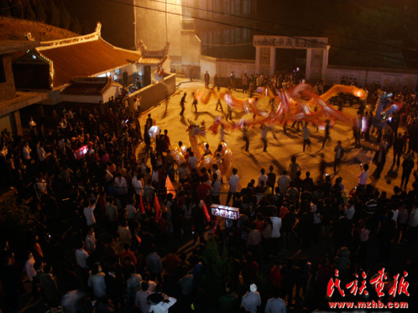 鑼鼓喧天,鞭炮齊鳴。每年的正月十三至正月十五,承啟樓所在的高頭鄉(xiāng)都要舉行隆重的民間舞龍活動,祈求新一年風(fēng)調(diào)雨順、平安吉祥,比春節(jié)還要熱鬧。由于舞龍都是年輕人來參加,元宵節(jié)舞龍又可以稱做年輕人的盛會。
