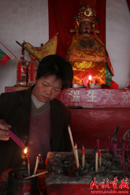 兩年來,作為保生大帝廟守廟人,江云山早上起來最重要的事情就是打開廟門,給諸神上香,敬茶。除了保生大帝神外,廟里還供奉有關(guān)公和文昌君。人們一般向關(guān)公神祈求發(fā)財(cái),向文昌君神祈求兒女考上大學(xué),早日成才。江云山說,只要真心信奉,人們來年各方面的愿望都會得到神靈的保佑。