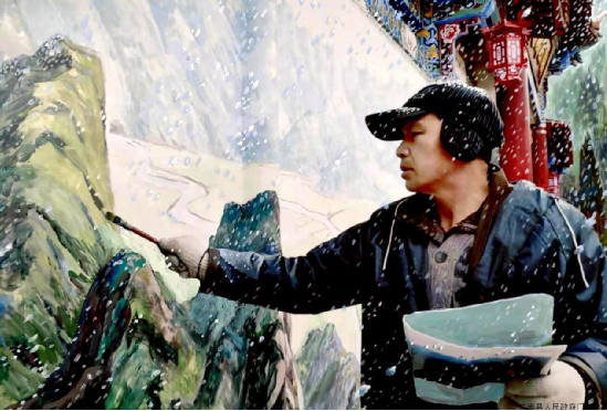 進(jìn)士后裔陸華岳老師在蓮湖公園冒著嚴(yán)寒創(chuàng)作 (蘭天明攝影)