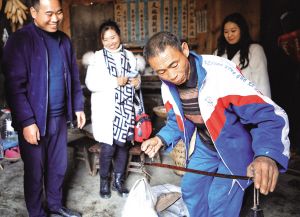 在村里修復舊屋的趙貢彩接到游客電話,馬不停蹄地趕回家中,自家手工制作的苕粉成了游客心心念念的香餑餑。拿出早已生銹的秤桿,一袋袋苕粉被游客搶著購買?!岸际橇糁约页缘?,哪想著能賣出去喲?!毙χf罷,趙貢彩拿出手機,微信一掃,錢款立即到賬。