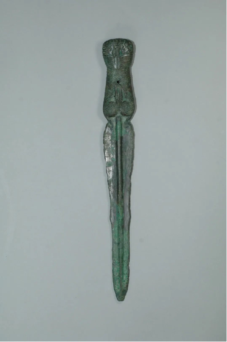 第四,夏家店上層文化中大量的游牧和騎馬民族文化因素,應(yīng)是晚商以來,伏爾加河流域的塞伊瑪文化經(jīng)南西伯利亞、外貝加爾地區(qū)的卡拉蘇克文化和塔加爾文化到達(dá)蒙古高原和中國北方長城地帶,形成諸青銅文化,繼而進(jìn)一步向東方推進(jìn),抵達(dá)夏家店上層文化。其中受長城地帶柄身連鑄匕首式短劍影響,形成夏家店上層的銎柄直刃劍,各種動(dòng)物雕塑形象也被吸收借鑒,在夏家店上層廣泛流行開來。