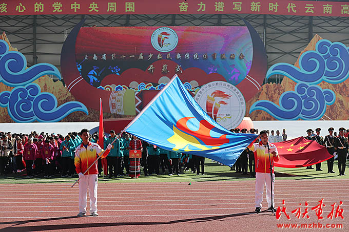 云南省少數(shù)民族運(yùn)動(dòng)會(huì)國(guó)旗、會(huì)旗方陣入場(chǎng)