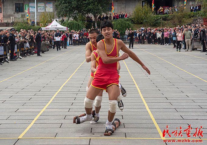 永州市委統(tǒng)戰(zhàn)部副部長、市民宗局局長周建志在開幕式上致辭,運動員和裁判員代表分別進行了宣誓。據(jù)悉,本屆民族運動會會期兩天,共設押加、陀螺、蹴球、高腳對抗、板鞋競速、毽球、射弩等7個競賽項目。