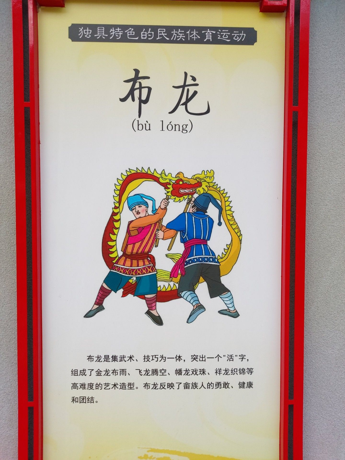 布龍是集武術(shù)、技巧為一體,突出一一個"活"字,組成了金龍布雨、飛龍騰空、幡龍戲珠、祥龍織錦等高難度的藝術(shù)造型。布龍反映了畬族人的勇敢、健康和團(tuán)結(jié)。