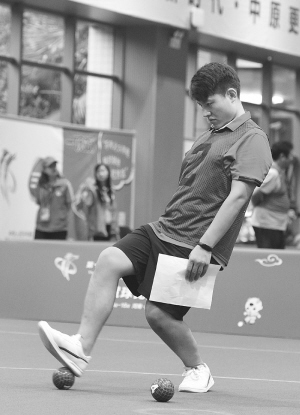 在分組循環(huán)賽女子單蹴中,河北隊(duì)員趙佳美遇到了強(qiáng)勁對手——福建隊(duì)男女混合雙蹴一等獎得主鐘金雪。趙佳美發(fā)揮得不錯,雙方比分始終咬得很死。鐘金雪起腳擊球干凈利落,在比分上形成壓制。