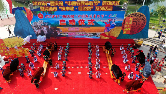 在廣西河池市,每逢“春節(jié)”“三月三”“豐收節(jié)”等重大節(jié)慶活動,當?shù)貕炎迦罕姸紩宄扇壕奂谖蓍芟隆V場上、曬谷坪……歡快地一起“打魯列”。