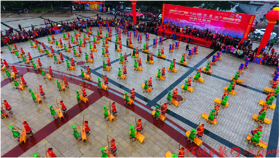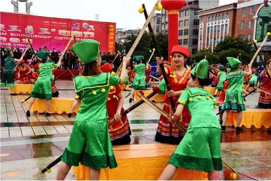 都安縣500名群眾歡聚一堂,打起扁擔,喜迎“三月三”。