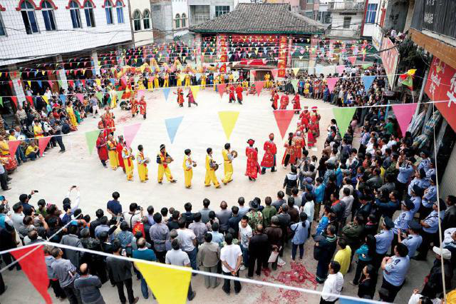 在酬謝自然之神后,由祭司念誦祭文,紀念民族英雄瓦氏夫人,頌揚瓦氏夫人率領(lǐng)將士打擊倭寇的英雄事跡,傳授民族歷史知識,宣揚保衛(wèi)家園、謀求平安的民族精神。