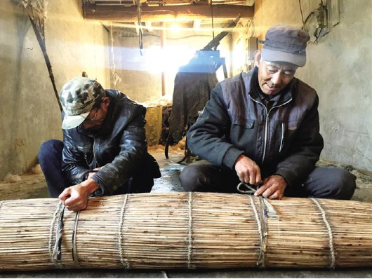 接著,父子幾人配合著,開始蹬簾子步驟?!皳{簾子的步驟最關(guān)鍵?!倍藕C髡f,蹬簾子的時候,蹬的時間長了不行,短了也不行,要掌握好時間,才能達到最好的效果?!澳亩夹枰?xì)化,稍不精細(xì)就會出現(xiàn)氈散了、爛了,做不成功就廢了。”說著,杜占財和杜占福在杜海明的帶領(lǐng)下,三人用雙腳,來來回回仔細(xì)地進行著搟簾子。