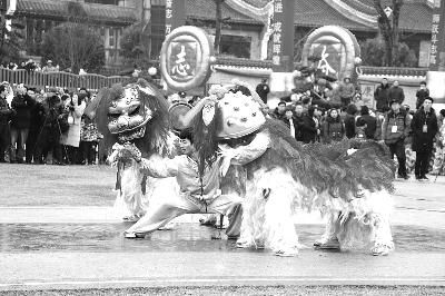 在湖南衡陽舉辦的南岳龍獅爭霸賽現(xiàn)場的舞獅表演。賈 艷 攝
