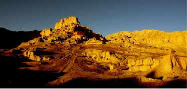 黃昏時(shí)分,我們進(jìn)入阿里札達(dá)縣,象泉河谷的臺地上,一座頹敗的天降塔驟然闖入視線,讓人猝不及防地一步便踏入歷史中。在雪域高原的梵天佛地里,佛塔觸目皆是——天降塔、菩提塔、噶當(dāng)塔等。踏上阿里的土地,你勢必遭遇一個(gè)又一個(gè)的廢墟,滿目蒼涼又讓人心生崇敬。那個(gè)曾經(jīng)重啟青藏高原信仰時(shí)代的偉大王朝,早已埋沒在時(shí)間的塵埃里,只留下這些日漸風(fēng)化的紀(jì)念碑,講述著它曾經(jīng)的奇跡和宿命。