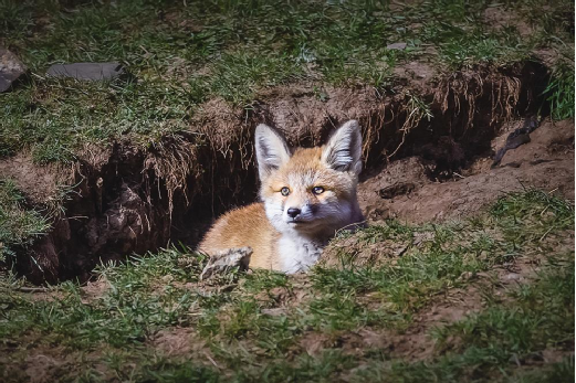 或許是肚子真的餓了,或許是被洞外草原鼠吱吱叫的聲音所吸引,膽大的小家伙又探出小腦袋來,警覺地向周圍觀望。一會兒,周圍的草地上沒有了羊群,草原鼠叫聲也隨之消失,只有山鳥的歌聲清脆嘹亮,一切又顯得寧靜祥和。三只小家伙又悉數(shù)出了洞門,各自蹲在洞口的草地上,眼神中依然是深深的期待。