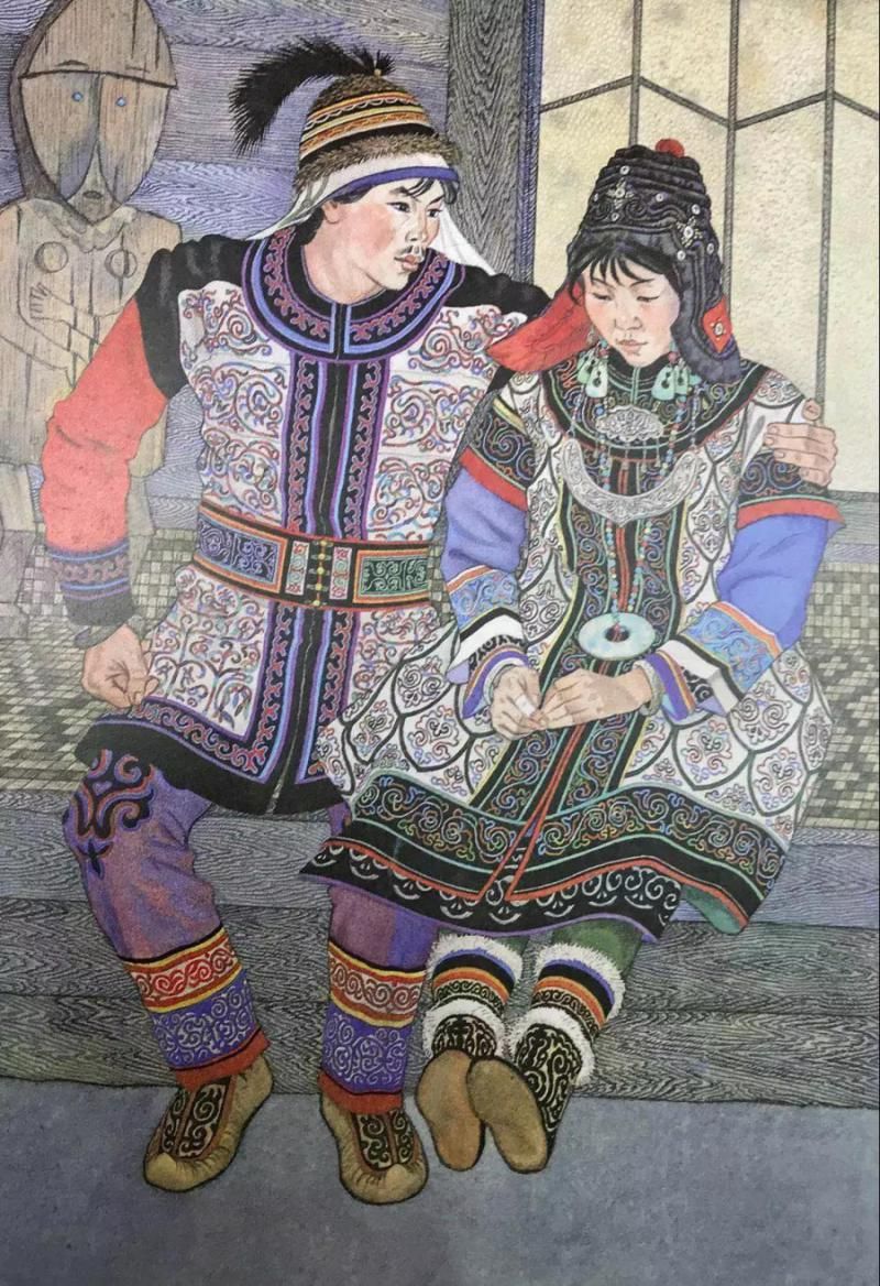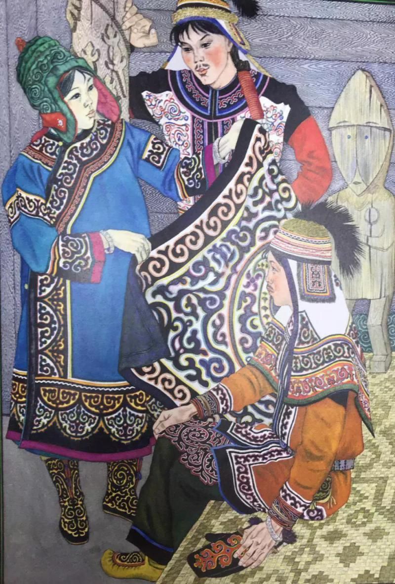 那乃族的插畫,有的用細膩的繪畫語言真實再現(xiàn)了那乃族的生活場景,有的用生動形象的裝飾語言表現(xiàn)了那乃族的傳說故事。