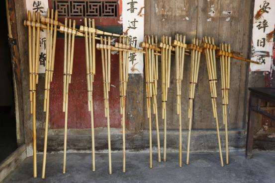 他想去想來,在家后面有一片竹林,他就用竹子一管一節(jié),用綿條做成簧片,裝在竹管里面吹發(fā)出聲音,每一根竹管發(fā)出的聲音都不同。他就發(fā)給這些兄弟每人一截,二兄弟比老三的長(zhǎng)一點(diǎn),老三比老四的長(zhǎng)一點(diǎn),老四比老五的長(zhǎng),老六就是最短的。大家晚上回來,大哥就說,你們干活真的挺賣力,每天都不知道怎么請(qǐng)你們吃飯,所以我想了一個(gè)辦法,以后每天聽到我發(fā)出的聲音,說明我已經(jīng)做好飯可以吃了,你們就回來互相打信號(hào)。大家都說,大哥是一個(gè)聰明人,這個(gè)辦法很好。