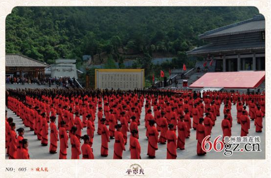 孔學(xué)堂背倚大將山,俯瞰花溪河,建筑面積12萬平方米。一期工程于2011年7月3日奠基,2012年9月28日即孔子誕辰2563周年紀念日落成揭幕;二期工程于2013年10月開工,將于2014年11月竣工。