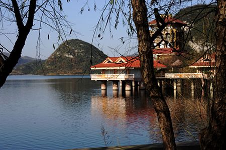 百花湖在朱昌鎮(zhèn)旁,湖中有100多個小島,以湖汊多、島嶼多見勝,遠眺之下,很有幾分江南水鄉(xiāng)的韻味。游覽百花湖的最佳時間是春天,那時百花湖上就會百花盛開,姹紫嫣紅,百花湖也是因此而得名的。景區(qū)以湖光山色和巖溶地貌的自然景觀為主體,兼具秀、幽、奇、巧的特色。