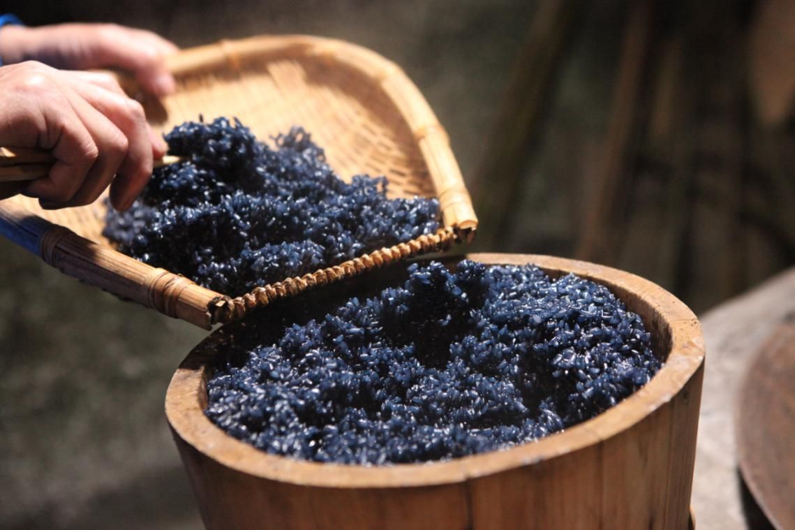 烏米飯制作技藝是石頭寨苗族同胞用天然植物烏飯葉和糯米制作而成的一種苗家特色傳統(tǒng)飲食。因其色澤純黑,故稱之為烏米飯。