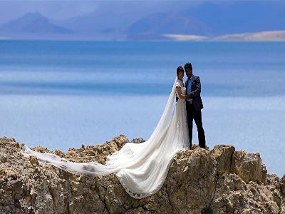 圖片說(shuō)明:拍婚紗照的藏族夫婦