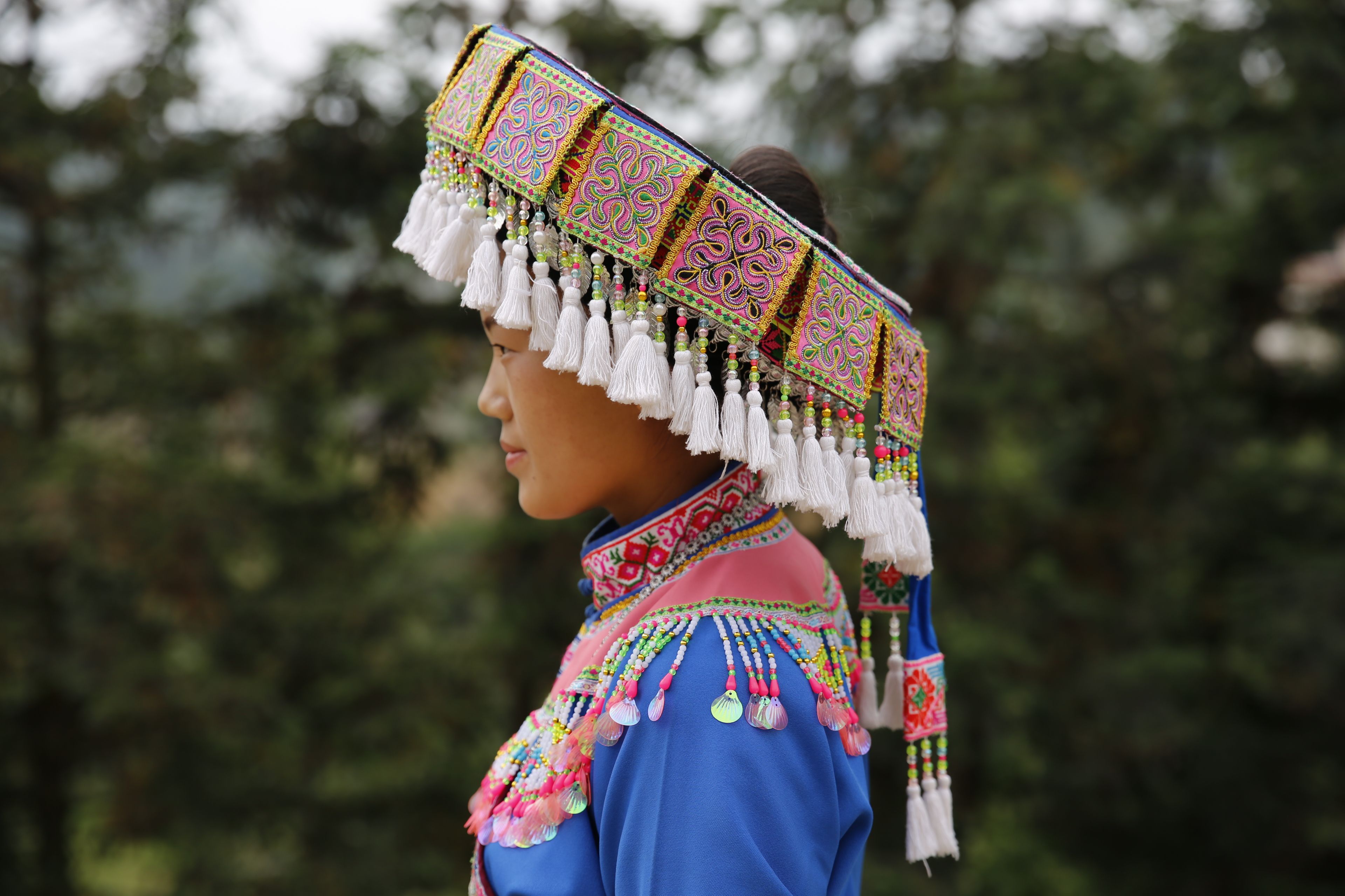 圖片說明:貴州貴陽苗族女子服飾花帽