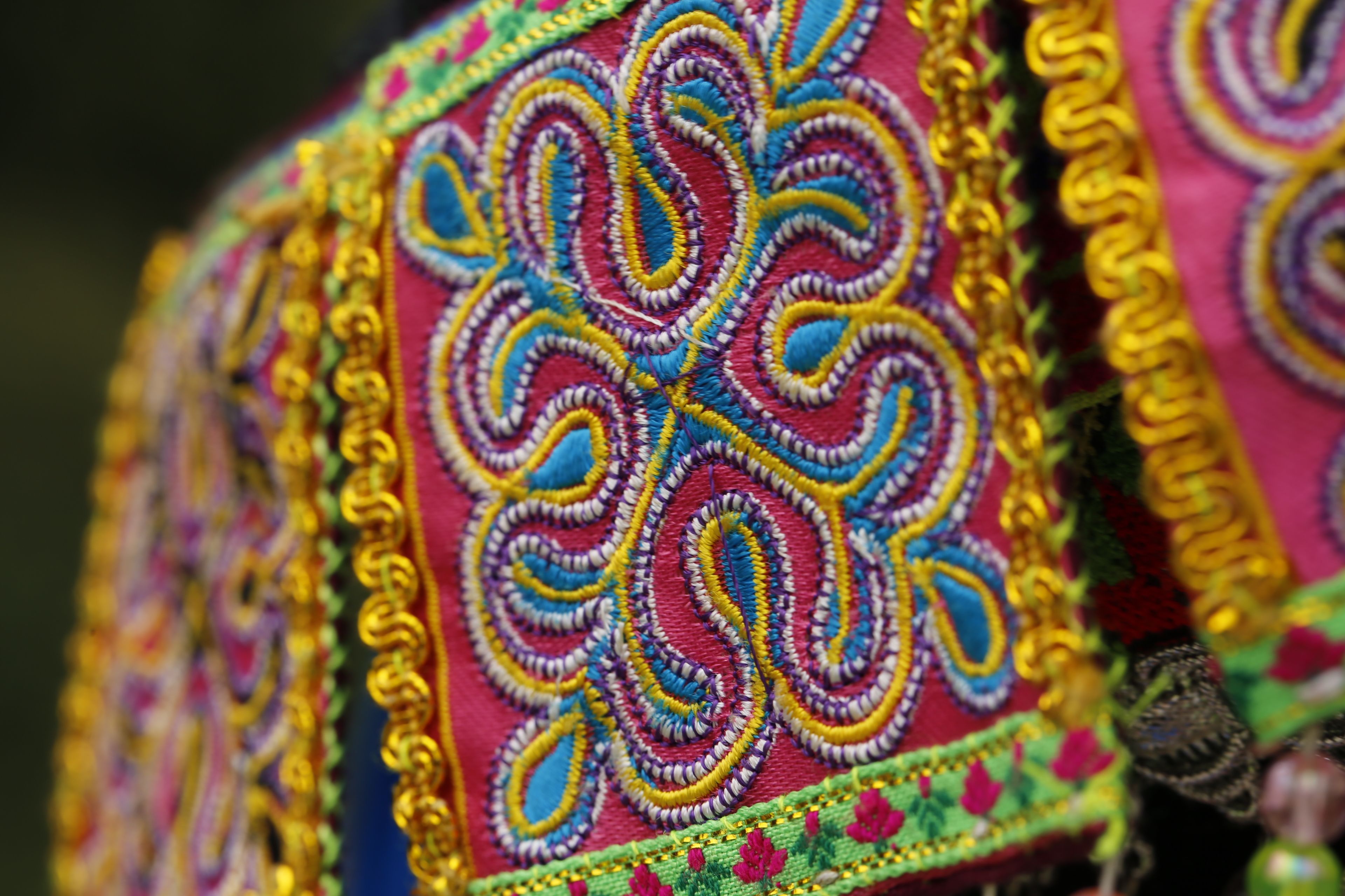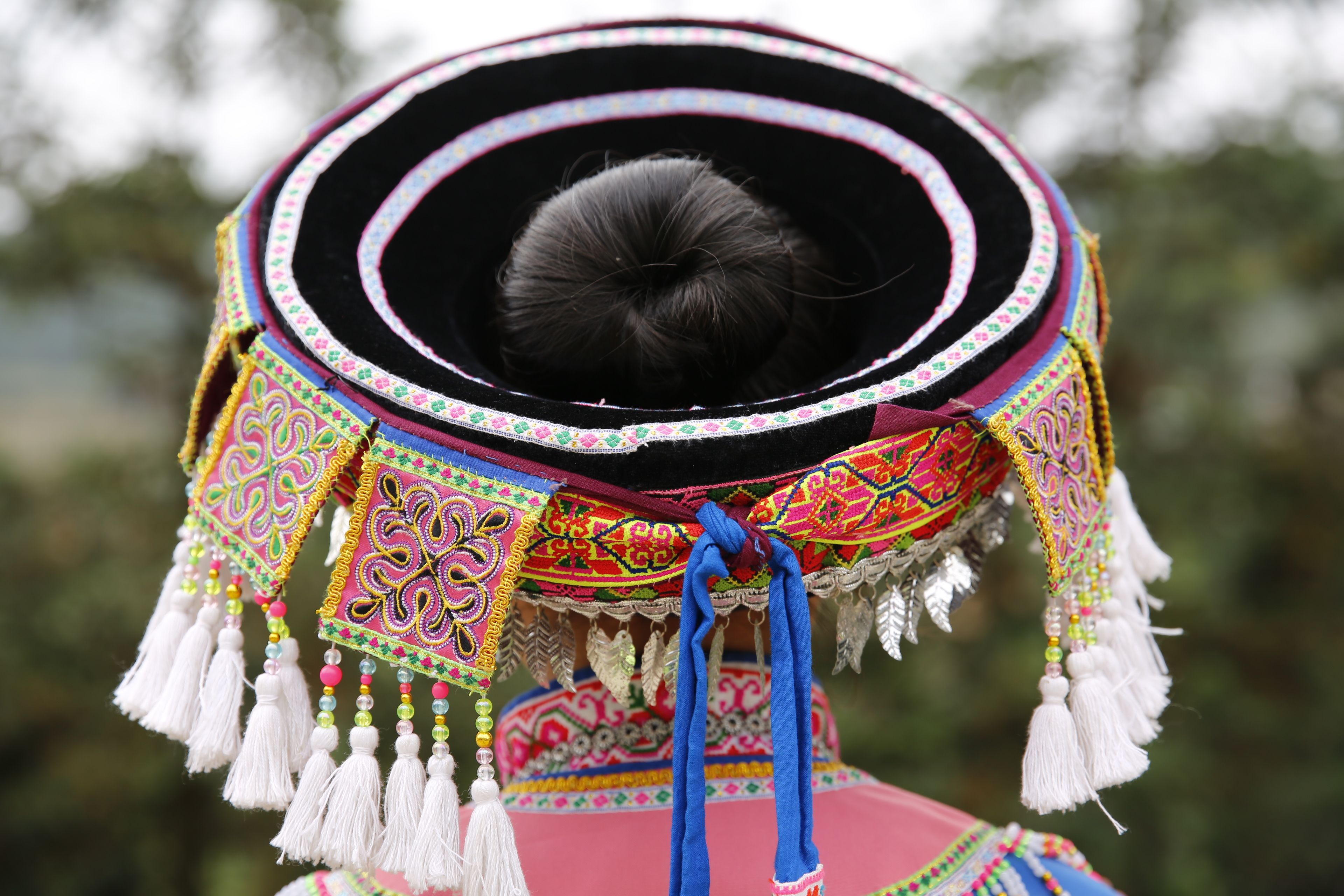 苗族女子服飾花帽-側(cè)面繡花及裝飾1