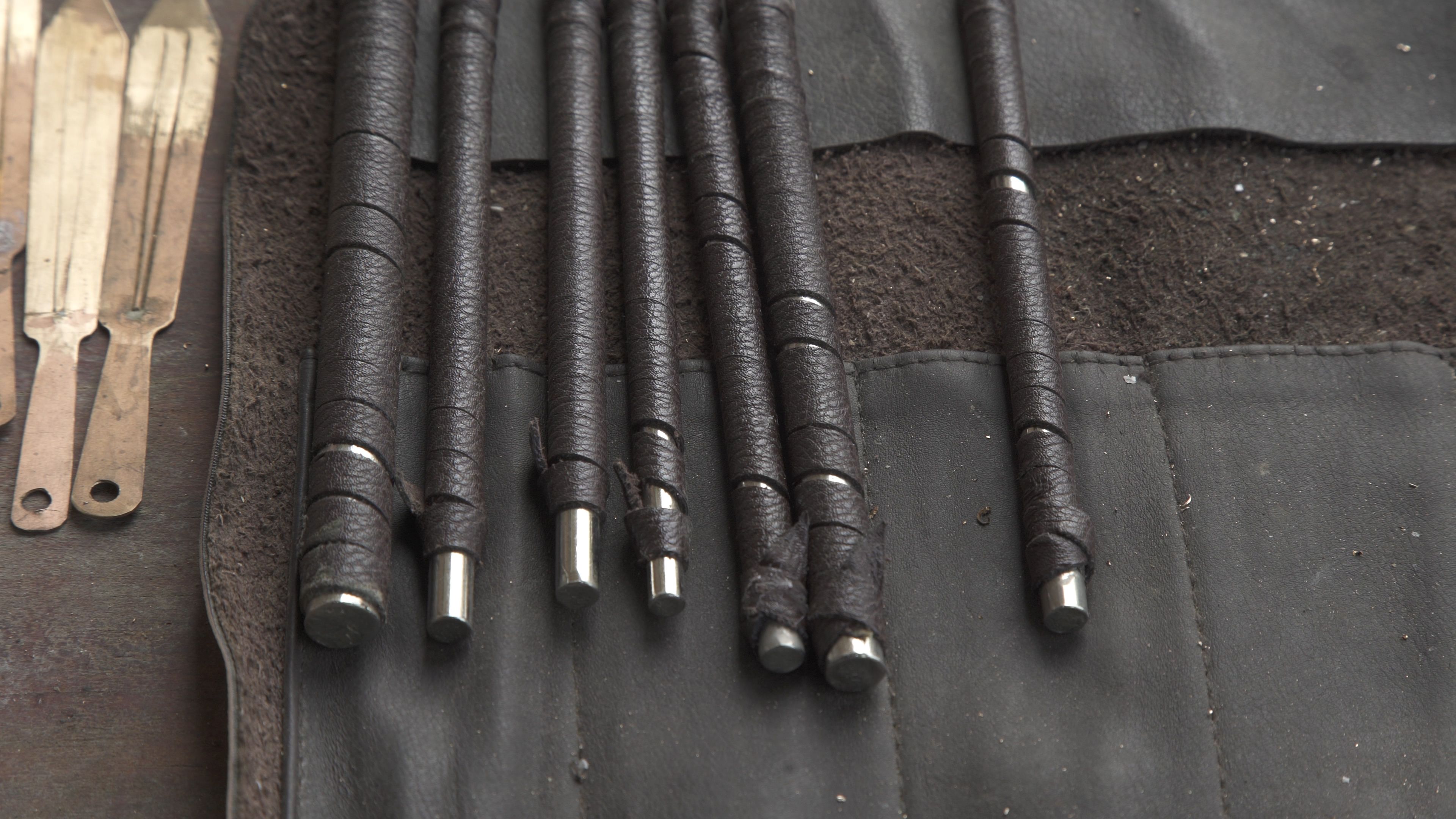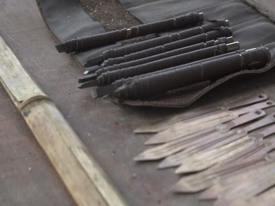 圖片說明:貴州貴陽(yáng)清鎮(zhèn)市流長(zhǎng)鄉(xiāng)腰巖村苗族制作口弦所需工具-鑿子