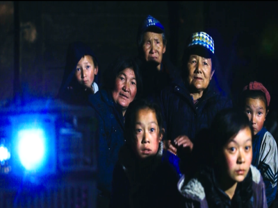 認(rèn)真看電影的村民
